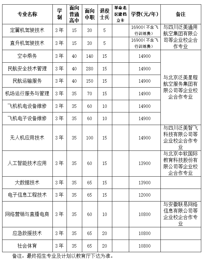 (3)符合报名条件的退役军人免于文化素质考试,依据职业技能考试或职业适应性测试成绩进行录取,学校根据招生计划、考生数和测试成绩等因素,划定校考合格分数线。